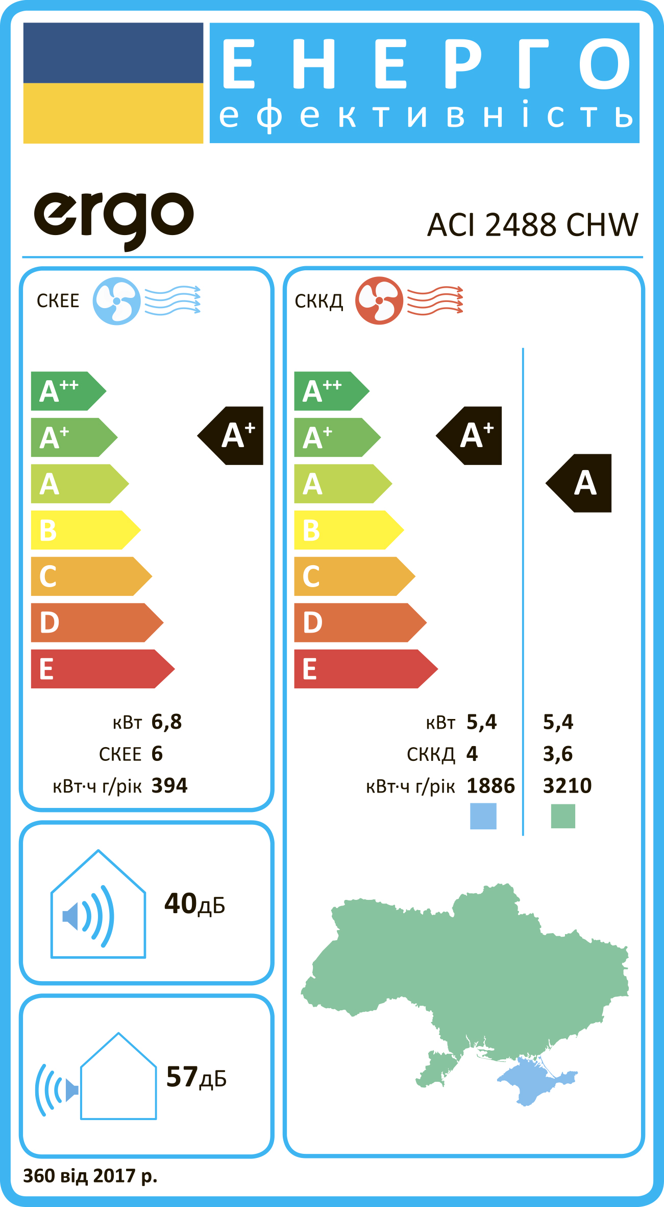 Вони працюють у широкому температурному діапазоні для зовнішнього блоку: від 0 до +50°C (моделі ERGO ACI 1888 CHW та ERGO ACI 2488 CHW від -15 до +50°C) у режимі охолодження та від -20 до +30°C у режимі обігріву.
