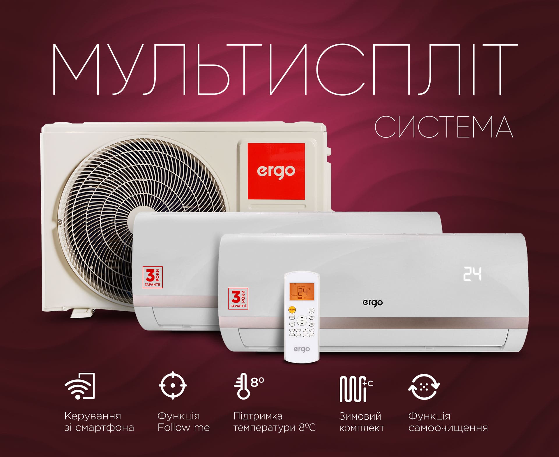 Мультиспліт система ERGO — кондиціонер з одним зовнішнім і декількома внутрішніми блоками, що підключаються паралельно. Такі кондиціонери дозволяють оптимізувати місце на фасаді будівель. При цьому у всіх приміщеннях залишається можливість індивідуального регулювання мікроклімату.
