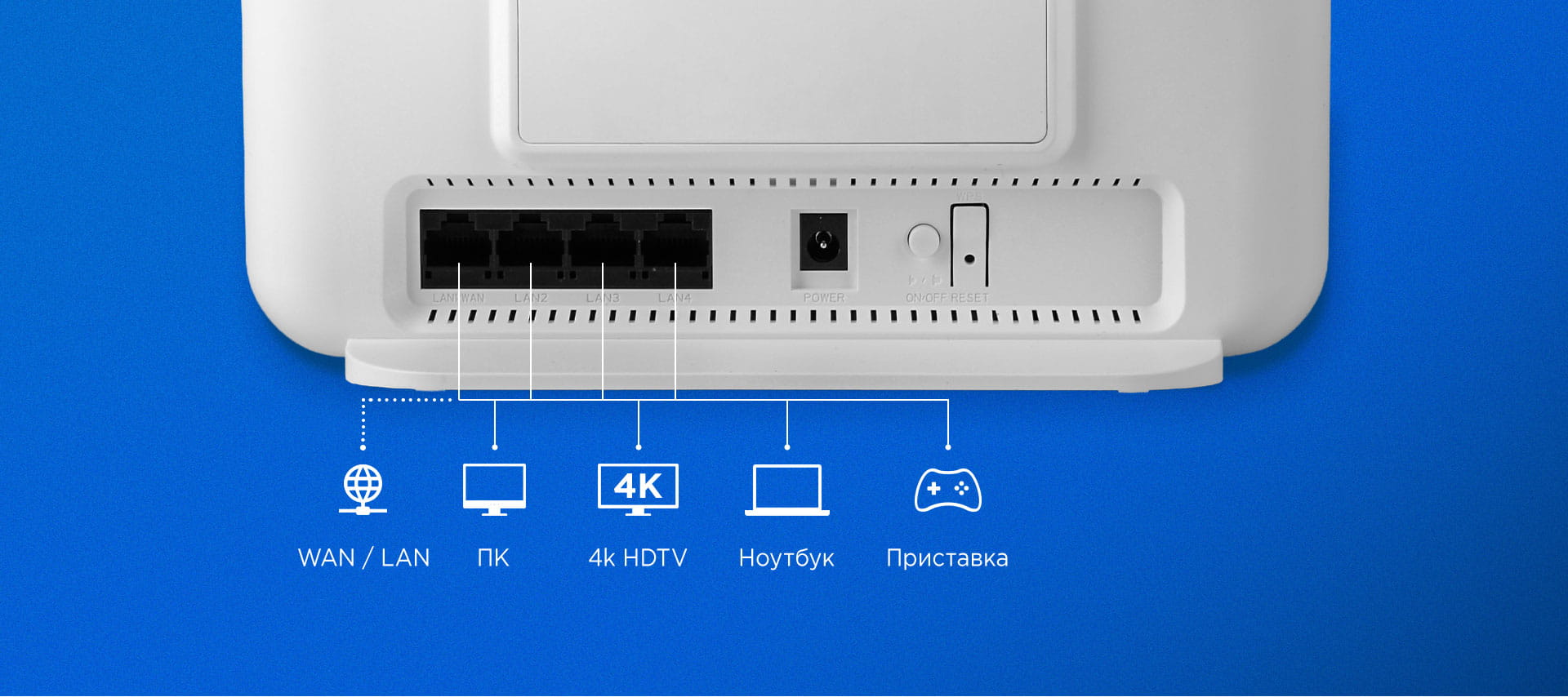 Для отримання максимальної швидкості можна підключити гігабітний дротовий інтернет до WAN, а комп’ютери, смарттелевізори, приставки – до одного з LAN портів.