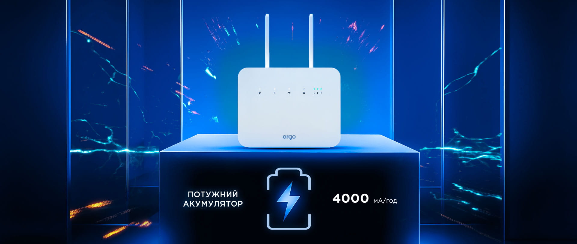Роутер ERGO R291 не боїться відключень електроенергії, адже здатен тривалий час працювати від власного акумулятора ємністю 4000 мА·год, забезпечуючи стабільну роботу в інтернеті або перебування на зв’язку.
