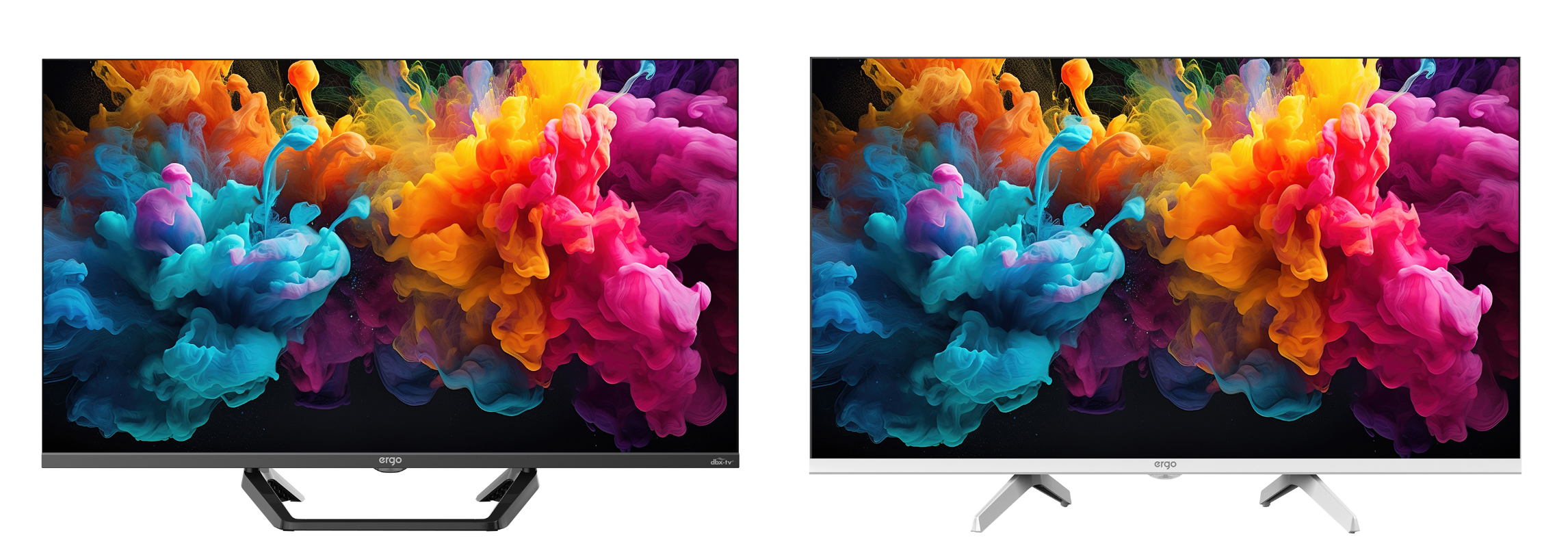 Моделі ERGO 32JFQ7500 і ERGO 32JFQ7510 побудовані на одній компонентній базі, але відрізняються передусім кольором і дизайном ніжок, пропонуючи на вибір класичний чорний або трендовий білий корпус. Ці новинки оснащуються якісними QLED-матрицями з підтримкою технології Quantum Dot і з роздільною здатністю Full HD, якої достатньо для екранів розміру 32 дюйми. В якості операційної системи виступає ліцензійна Android TV від Google, яка пропонує миттєвий доступ до безлічі застосунків та стрімінгових сервісів, а також простий та знайомий інтерфейс.
