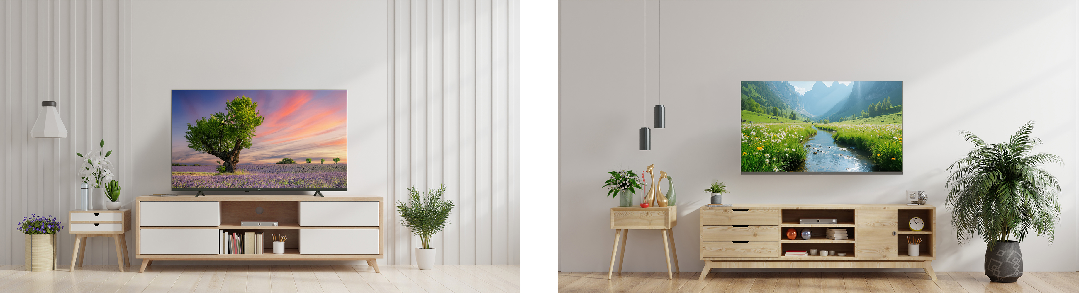 Вищезазначені телевізори працюють на базі операційної системи Google TV, яка вдало розкривається завдяки потужній електронній складовій цих моделей та дарує користувачу зручний інтерфейс й вільний доступ до різноманітного контенту. Керування здійснюється через багатофункціональний пульт, що має вбудований мікрофон для голосових команд і оснащується кнопкою, яку можна запрограмувати під власні потребі, а також у разі втрати є можливість пошуку пульта натисненням кнопки на телевізорі. Аудіосистема потужністю 24 Вт з підтримкою Dolby Atmos забезпечує якісне та напрочуд реалістичне звучання. Корпус новинок практично позбавлений будь-яких рамок зверху і з боків, тому ці телевізори мають дуже привабливий вигляд та займають менше місця.
