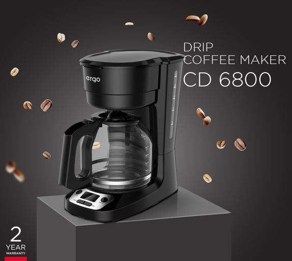 ERGO CD 6800 – це класична крапельна кавоварка, яка готує каву методом фільтрування. Особливістю даної моделі є доволі суттєвий об’єм резервуару та колби, що дозволяє готувати до 1,8 літрів кави за один раз, наприклад, для великої компанії. Крім того, ця модель за допомогою спеціального таймера може готувати запашну каву за розкладом, яку можна смакувати одразу після пробудження чи повернення додому з роботи. Серед переваг цієї новинки також висока потужність 900 Вт, функція підтримання температури після приготування та багаторазовий фільтр в комплекті.